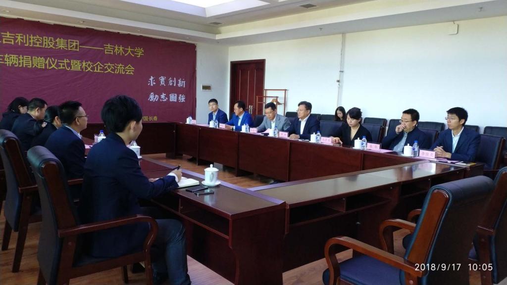 2018年9月17日上午,浙江吉利控股集团——吉林大学车辆捐赠仪式暨校企交流会在中心校区鼎新楼652会议室成功举行。