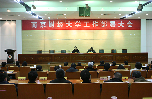 校长宋学锋对学校2015年工作作出全面部署。他指出,2015年是学校全面完成“十二五”规划的收官之年,是学校全面深化改革、加强内涵建设、科学谋划“十三五”事业发展的关键之年,也是学校全面推进依法治校的开局之年。扎实做好今年各项工作,对于推进学校各项事业迈上新台阶意义重大。今年学校工作的总体要求是:以立德树人为根本,以提高质量为核心,以转变作风为保证,全面深化综合改革,大力加强内涵建设,着力推进依法治校,为建设有特色、高水平财经大学而努力奋斗。宋学锋校长从人才培养、学科建设、科学研究、师资队伍建设、对外交流合作、党建与制度保障等六个方面进行部署。人才培养方面,要做好迎接教育部本科教学审核评估的迎评促建工作,积极推动江苏高校品牌专业的申报工作,进一步加强学生工作,进一步推动博士人才培养项目建设,完善红山学院管理运行机制,继续办好成人教育。学科建设方面,要进一步提升省优势学科建设水平,科学制定学科建设规划。科学研究方面,要加强2011协同创新中心建设,加强科研平台建设,建立科学合理的科研奖励制度。师资队伍建设方面,要加强高层次人才的培育和引进力度,注重人才培育。对外交流方面,要大力实施国际化发展战略,积极开发新的交流项目,提高国际化办学水平。党建与制度保障方面,要加强党建和思想政治工作,扎实做好党风廉政建设和反腐倡廉工作,全面推进依法治校,启动学校“十三五”规划的编制工作,做好“青教公寓”建设项目和“大学科技园”建设及招商工作,深化后勤管理改革,做好学校安保及和谐校园工作。宋学锋校长最后强调,做好今年的各项工作,各单位要统筹兼顾,协同推进;要强化效率,提高执行力;要保质保量,加强考核,确保圆满完成新学年各项工作目标。