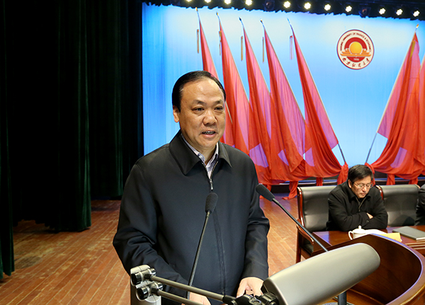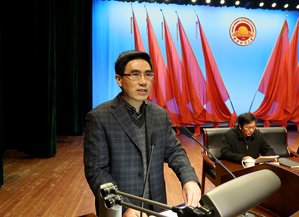 会议在雄壮的国歌声中拉开帷幕。陈章龙书记作《南京财经大学2013年度工作报告》,回顾总结学校2013年改革、建设和发展的基本情况,对2014年的主要工作提出初步意见。陈书记从六个方面对学校2013年改革、建设和发展的基本情况进行了回顾和总结:第一,深入学习贯彻党的十八大和党的十八届三中全会精神,深入开展党的群众路线教育实践活动,全面加强党建和思想政治工作;第二,持续深化人才培养模式改革,不断提高人才培养质量,推动学校教学工作协调可持续发展;第三,加强高水平学科建设,不断提升科研与社会服务水平,扎实抓好人才队伍建设;第四,加强学风建设,积极推进职业发展教育、创新创业教育、第二课堂活动一体化建设,努力提升毕业生就业竞争力;第五,大力实施国际化发展战略,深化国际合作与交流,加快教育国际化进程;第六,坚持以人为本,做好各项支撑保障工作,推进和谐校园建设。