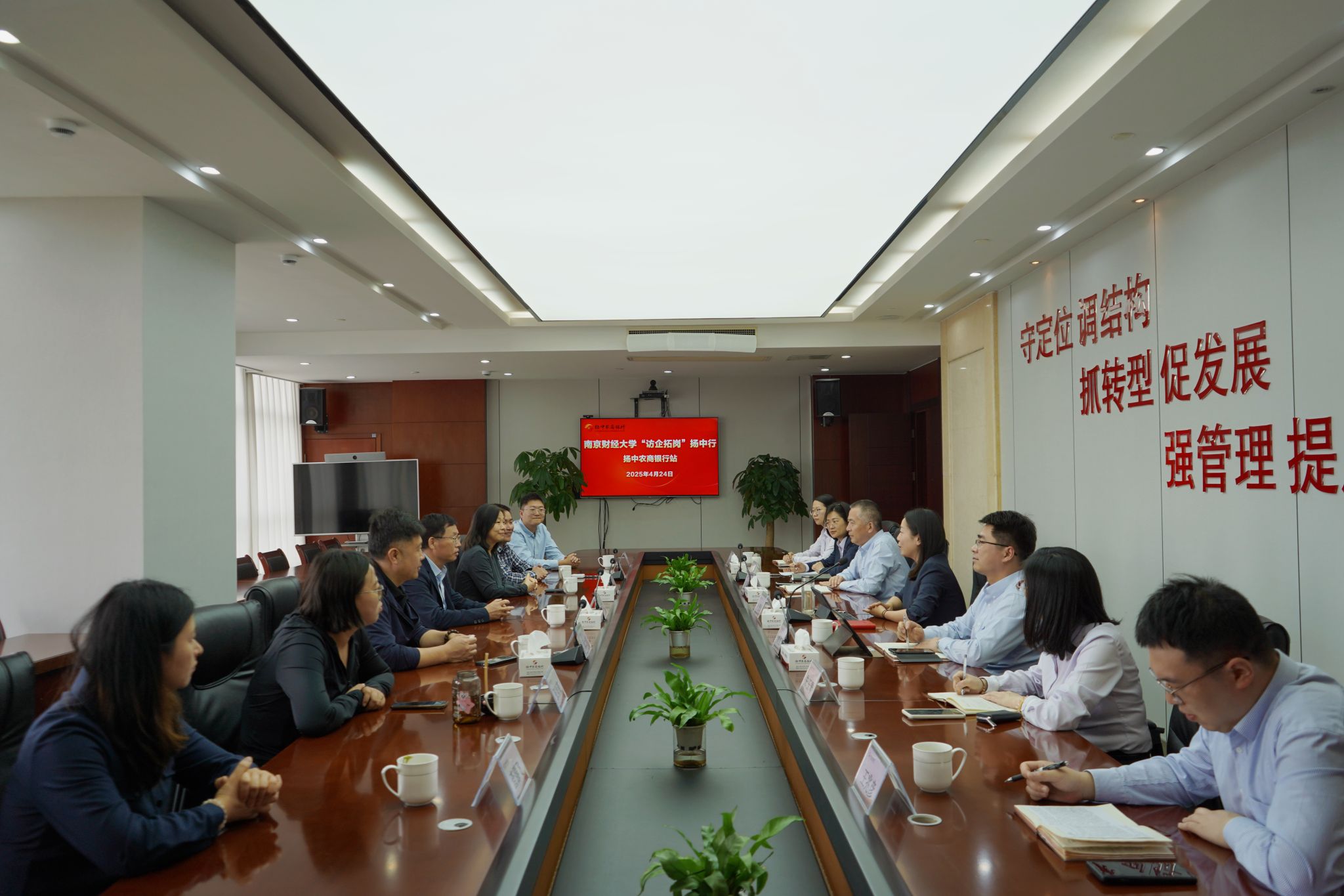 黄步龙副校长一行还前往扬中农商行进行访企拓岗。在座谈交流会上,孙菲书记介绍了学院学科建设、人才培养、实习实践、毕业生就业等情况。扬中农商行党委副书记、行长,我校2001级校友叶雁琳介绍了扬中农商行的建设理念和发展情况,并重点解读了扬中农商行在新形势下的人才需求特点,希望与学校加强联动,精准化培养行内亟需的金融科技人才。副行长姚红华介绍了南财毕业生在扬中农商行的发展情况,希望双方探索交互性更强的合作模式。税务2006级校友王兆彦和会计2011级校友陈琦回顾了在南京财经大学的学习经历,感谢母校的培养。黄步龙副校长表示,学校高度重视行业需求,希望强化校企合作,建立就业实习、人才培养、科研合作、社会服务等协同机制,畅通高校高质量智力资源的输出通道,推进校企共赢发展。