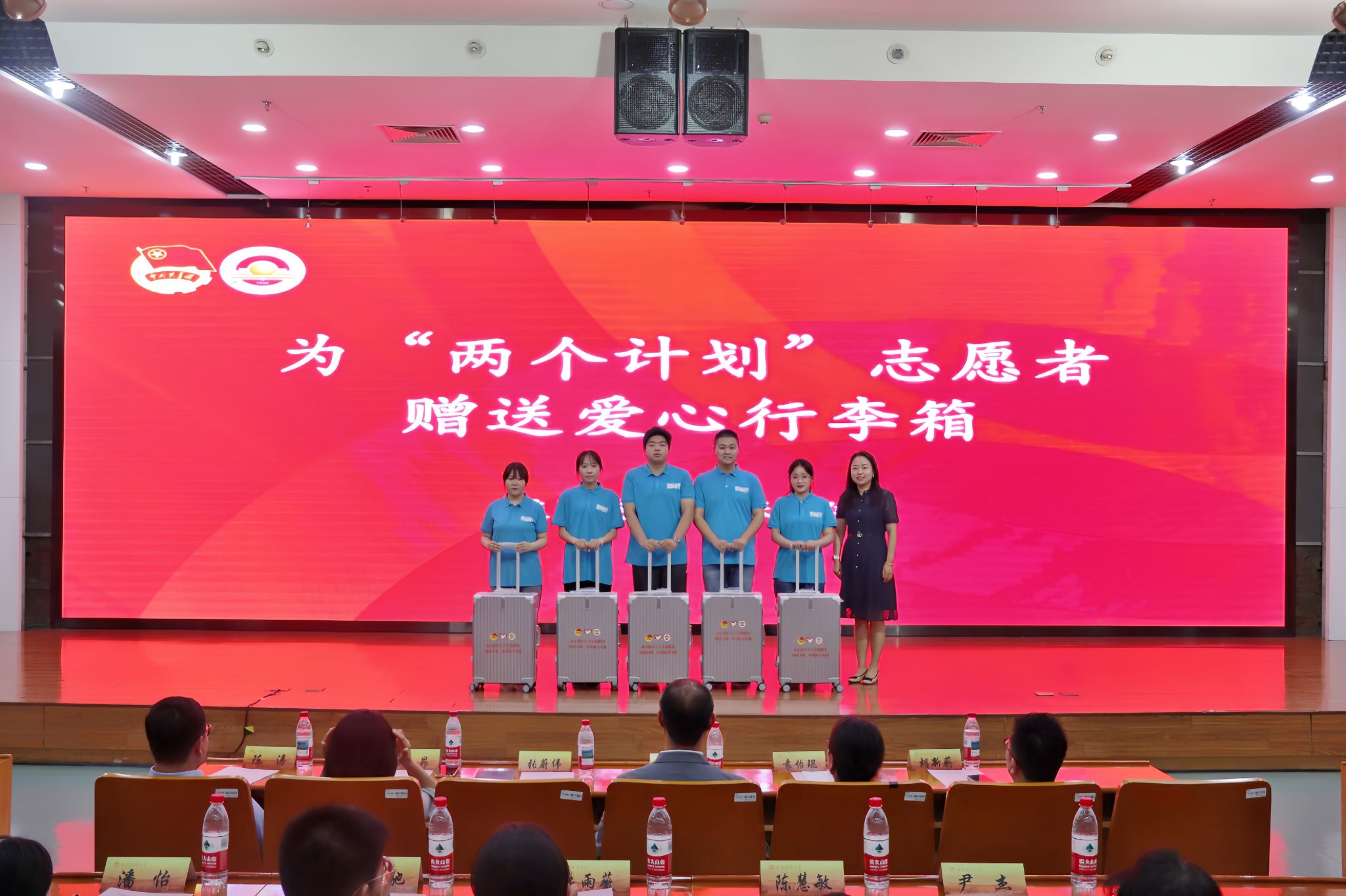 仪式上,校团委副书记陈涛介绍了我校2025年暑期社会实践和“两个计划”志愿服务工作筹备情况。学生处副处长袁怡琨、教务处副处长赵昂分别宣读了《南京财经大学2025年暑期社会实践活动校级立项名单》《南京财经大学2025年“两个计划”志愿者预录取名单》。2022年江苏大学生志愿服务乡村振兴计划志愿者代表、我校2022届毕业生高宸分享了从基层志愿者到基层公务员的经历与感悟。校团委书记张蔚伟为今年我校“两个计划”志愿者代表赠送爱心行李箱。