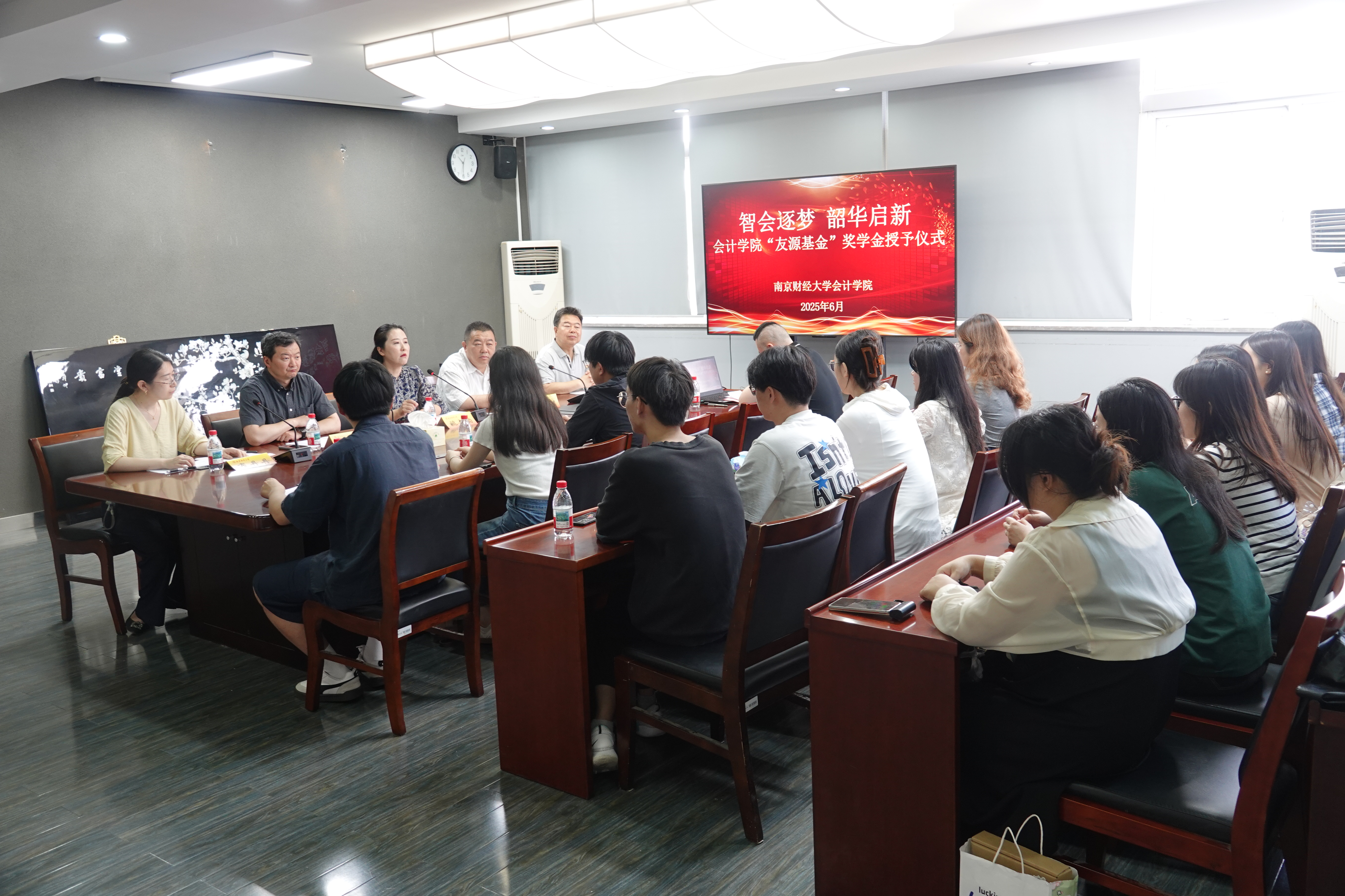 6月18日上午,会计学院在仙林校区德济楼307会议室举行智会2101班毕业主题班会暨“友源基金”颁奖仪式。党委常委、副校长姚文韵出席活动。会计学院领导班子成员、校友和教师代表、辅导员以及智会2101班全体同学参加活动。活动由会计学院党委副书记布丹丹主持。