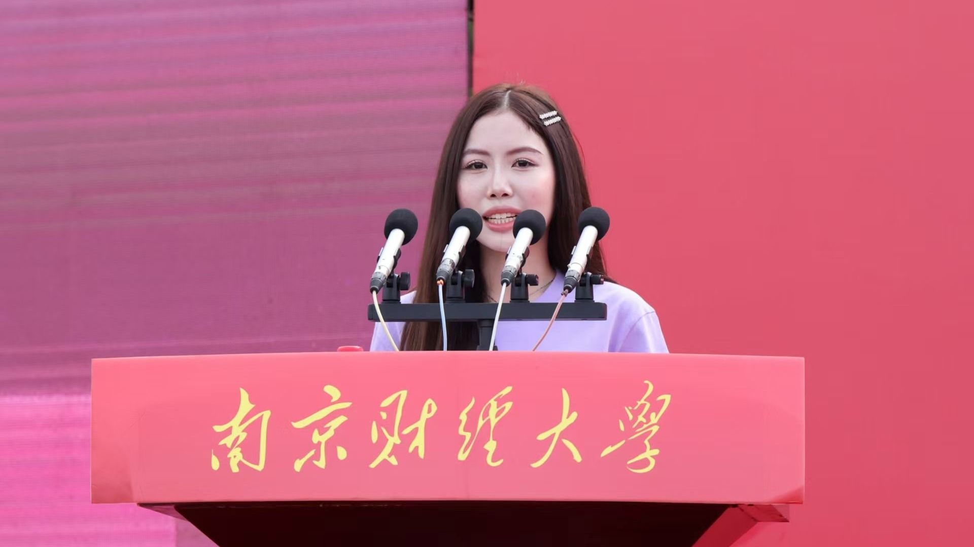 研究生新生代表、留学生代表,新闻与文化传播学院2025级硕士研究生李玉文发言。她分享了在南财从本科生到研究生的成长经历,表示将通过实践深入了解中国、促进中泰文化交流。