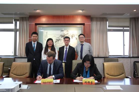 邱伟芬副校长和Dumont校长分别代表两校签署了合作备忘录。我校国际合作与交流处处长黄能、管理科学与工程学院副院长刘军(主持工作)陪同参加会谈。