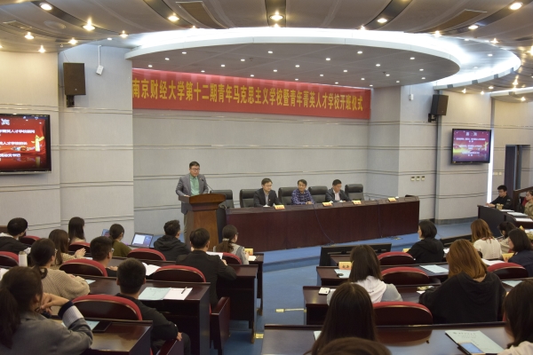 开班仪式在庄严的国歌中拉开序幕。校团委书记张励行宣读《关于录取桑敏等同学为南京财经大学青年菁英人才学校第十二期学员的决定》。