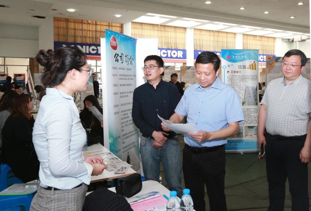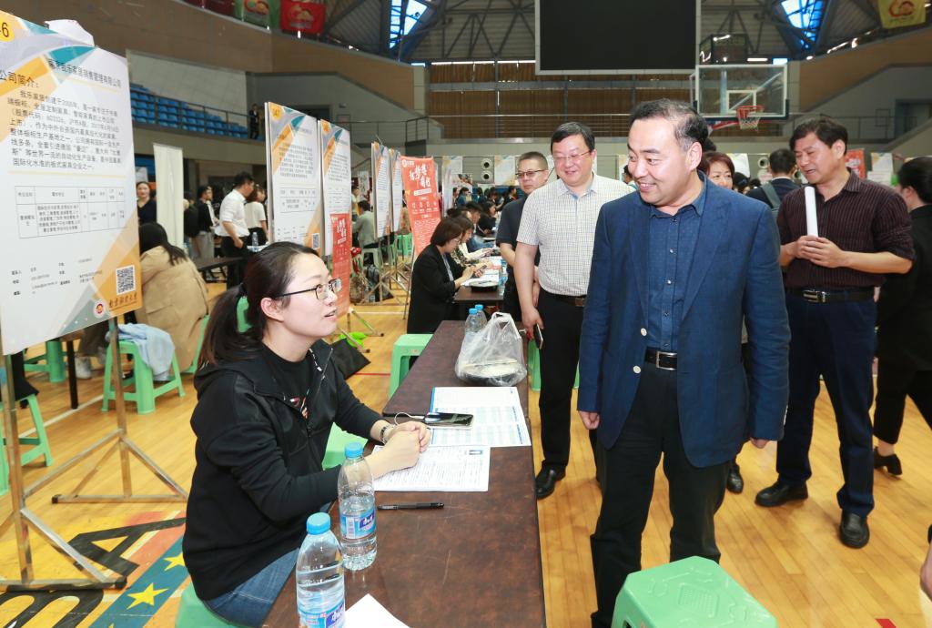 4月24日,我校2019届毕业生春季校园招聘会在仙林校区体育馆举办,近700家公司进场招聘。校党委书记张利民、校长程永波深入招聘现场,与用人单位和毕业生沟通交流,实地了解招聘单位和毕业生的情况并给予毕业生指导。