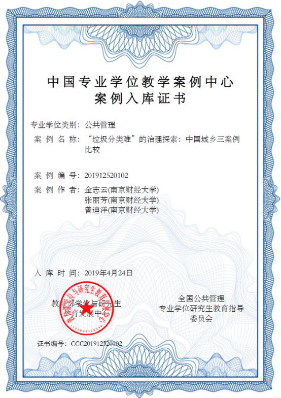 近日,从中国专业学位教学案例中心获悉,我校MPA教育中心金志云副教授的《“垃圾分类”难的治理探索:中国城乡三案例比较》《党建引领社区共治的探索:托乐嘉小区的蜕变》,秦建国副教授的《“五色”的共享单车:来自公共经济学的思考》,赵强教授的《从“网格化管理”到“织网工程”:地方政府创新的扩散缘何发生变异?》4篇案例入选中国专业学位教学案例库。这是继2017年黄建伟教授《机动车交通事故损害赔偿处理模式的创新之路》《浙江丽水电视问政:是动真格,还是“作秀”?》2篇案例入选后,我校MPA教育中心案例开发与教学工作取得的又一成绩。至此我校MPA教育中心已有6篇案例入库。