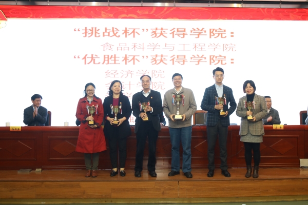 第九届“挑战杯”南京财经大学大学生课外学术科技作品竞赛“挑战杯”“优胜杯”获得学院代表上台领奖