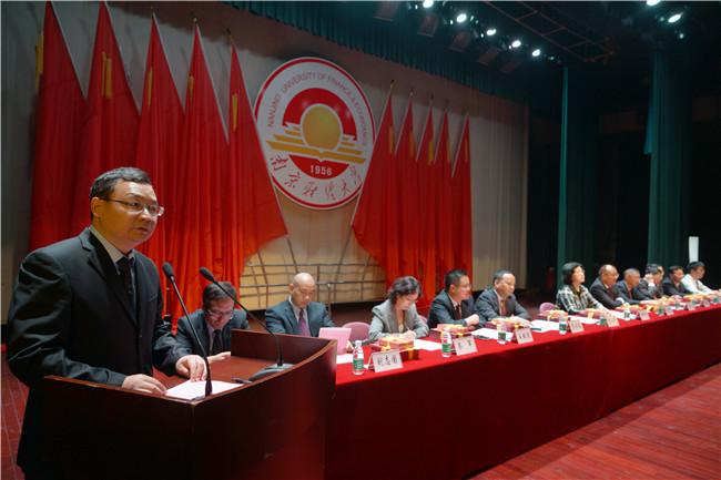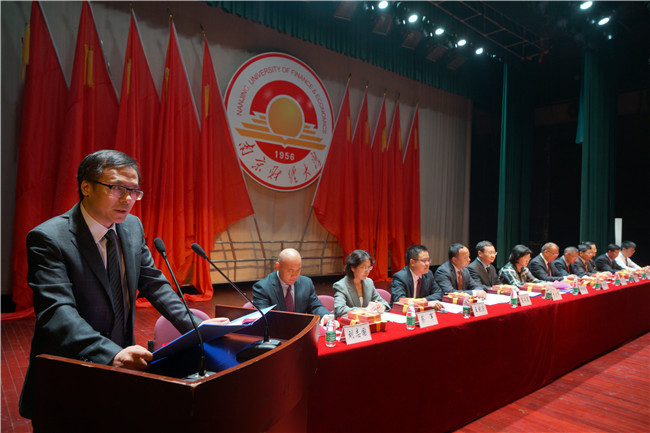 红山学院国际经济与贸易系系主任刘志国作为教师代表发言。他向毕业生们表示祝贺,希望同学们自强不息,踏实勤勉;学会宽容,牢记责任;百折不挠,永不退缩。