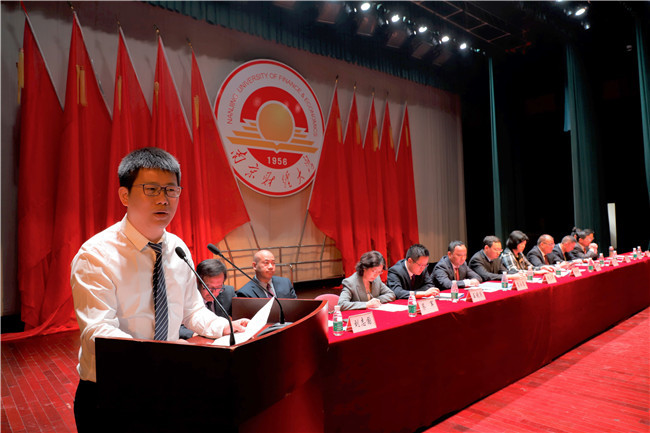 校友代表、金融2011届毕业生、南京甘汁园糖业有限公司营销事业部总经理、财务总监蔡智全分享了自己的工作经验和人生感触,勉励2019届毕业生同学认真工作、乐观生活。