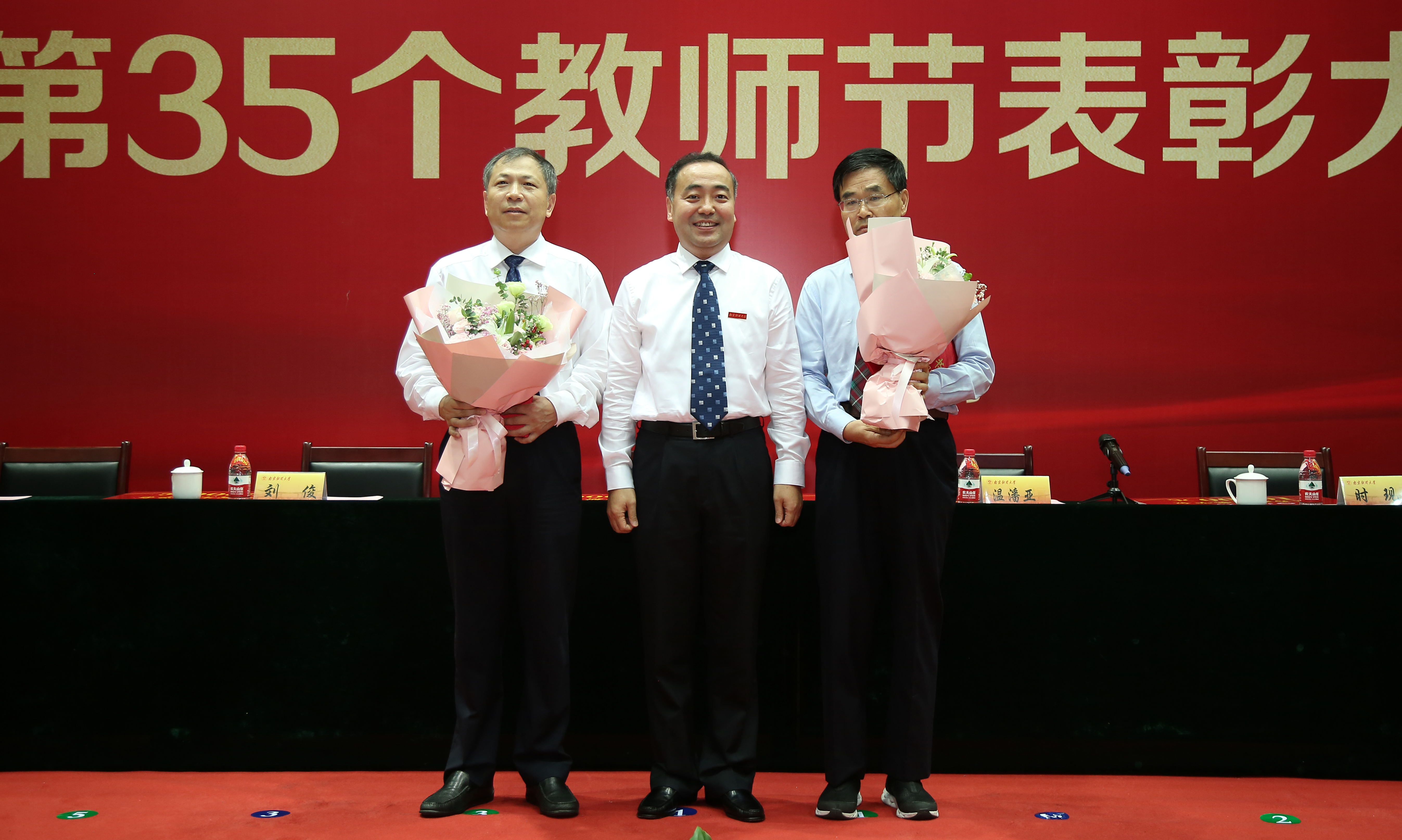 第35个教师节表彰大会上,程永波校长为江苏省首届“十佳研究生导师”提名奖获得者张从军教授和“十佳研究生导师团队”提名奖获奖者“区域经济学团队”颁奖。