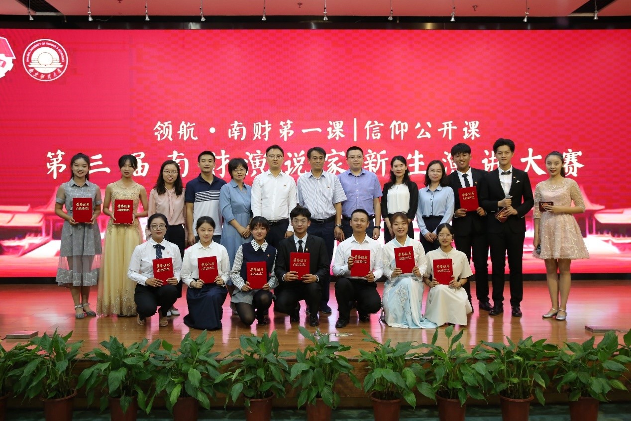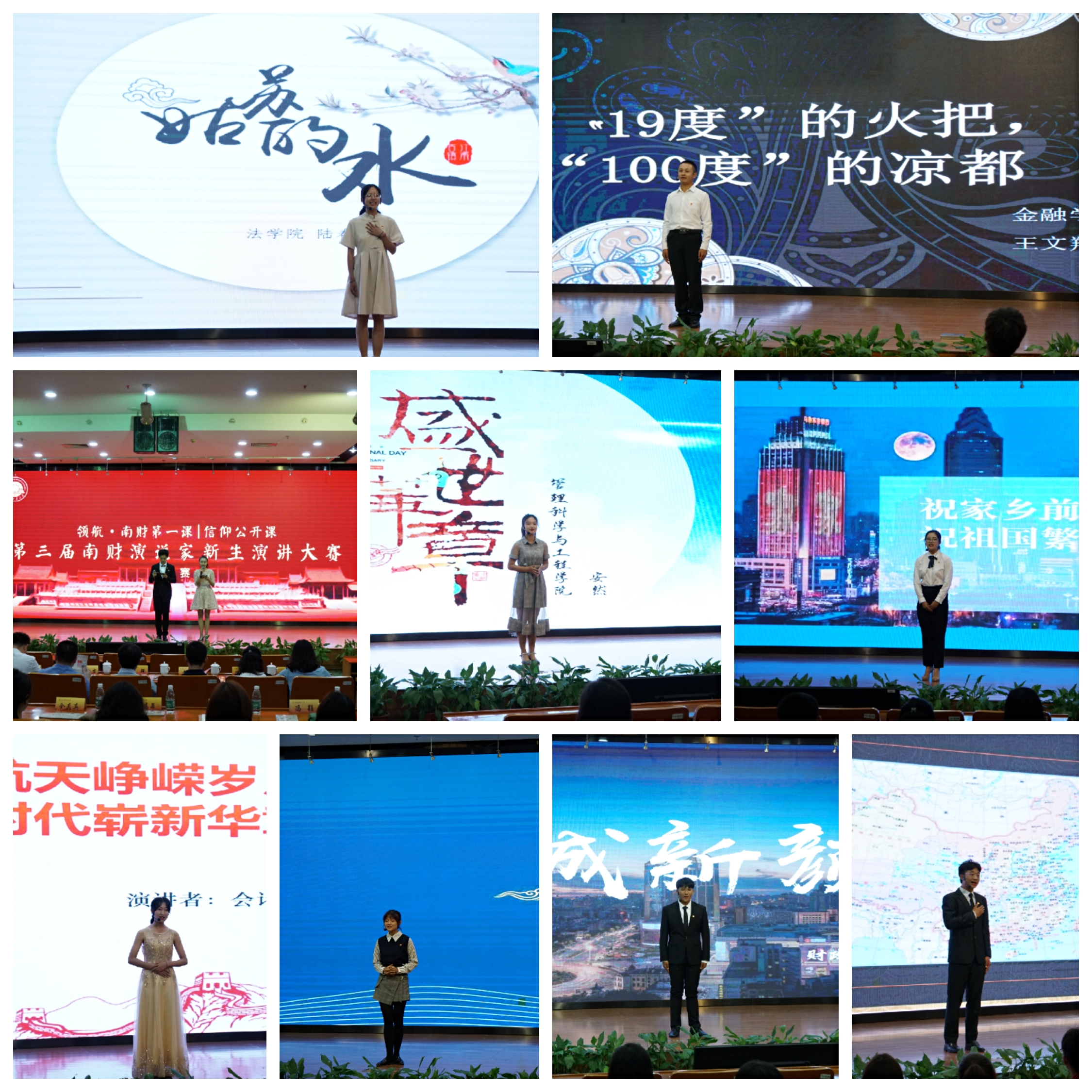 9月26日下午,我校领航•开学第一课:“迎华诞颂家乡,看时代新人说”演讲比赛暨第三届“南财演说家”新生演讲大赛决赛在仙林校区图书馆报告厅举行。大赛由校党委宣传部、校团委主办,百舸青年媒体中心、大学生演讲与辩论协会、思辩协会协办。党委常委、副校长李群出席活动,共青团江苏省委高校工作部副部长魏珍吉,相关职能部门负责人担任比赛评委,各学院党委副书记、分团委老师以及新生代表观看了本次比赛。