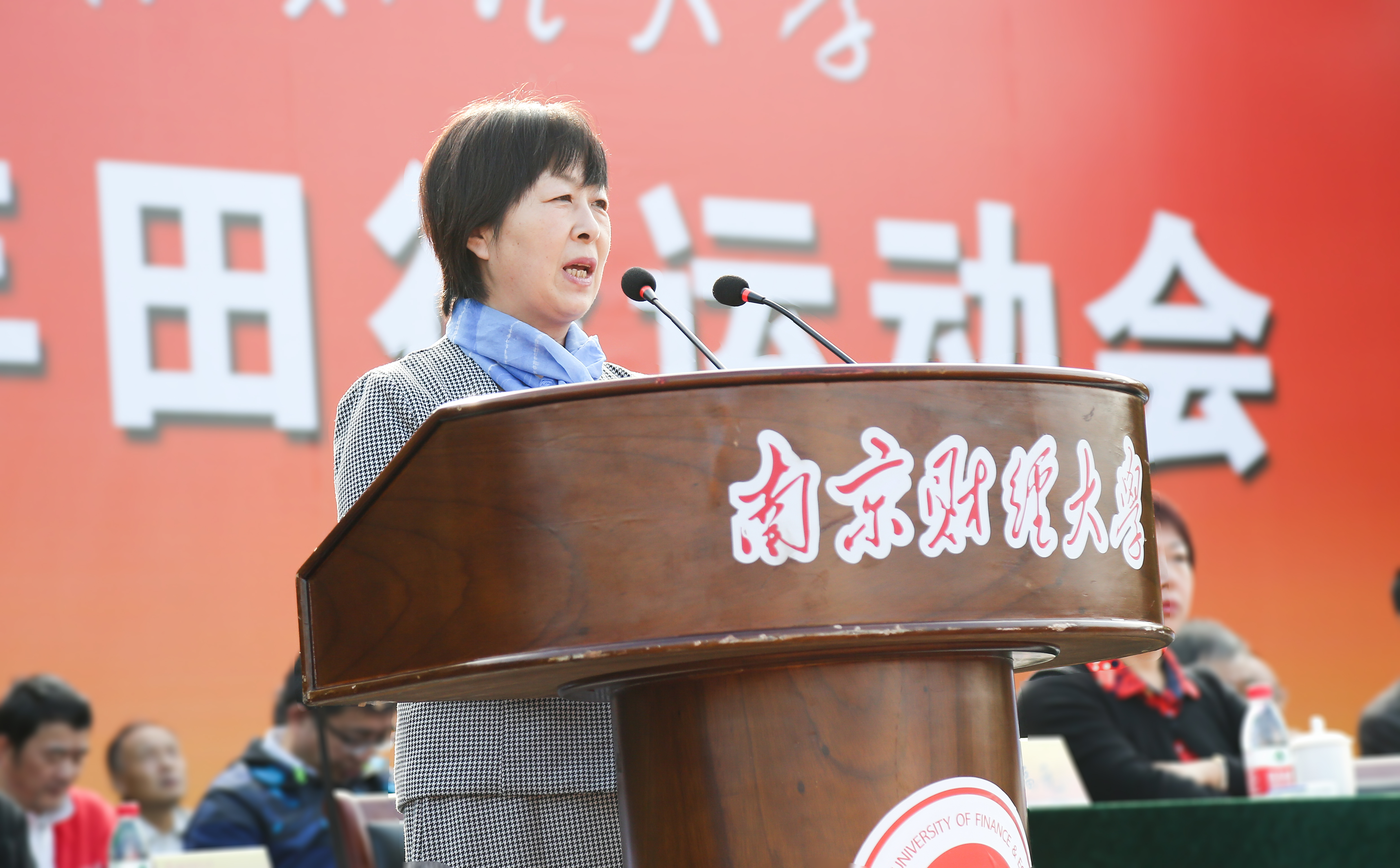 党委副书记温潘亚宣布我校2019年田径运动会开幕