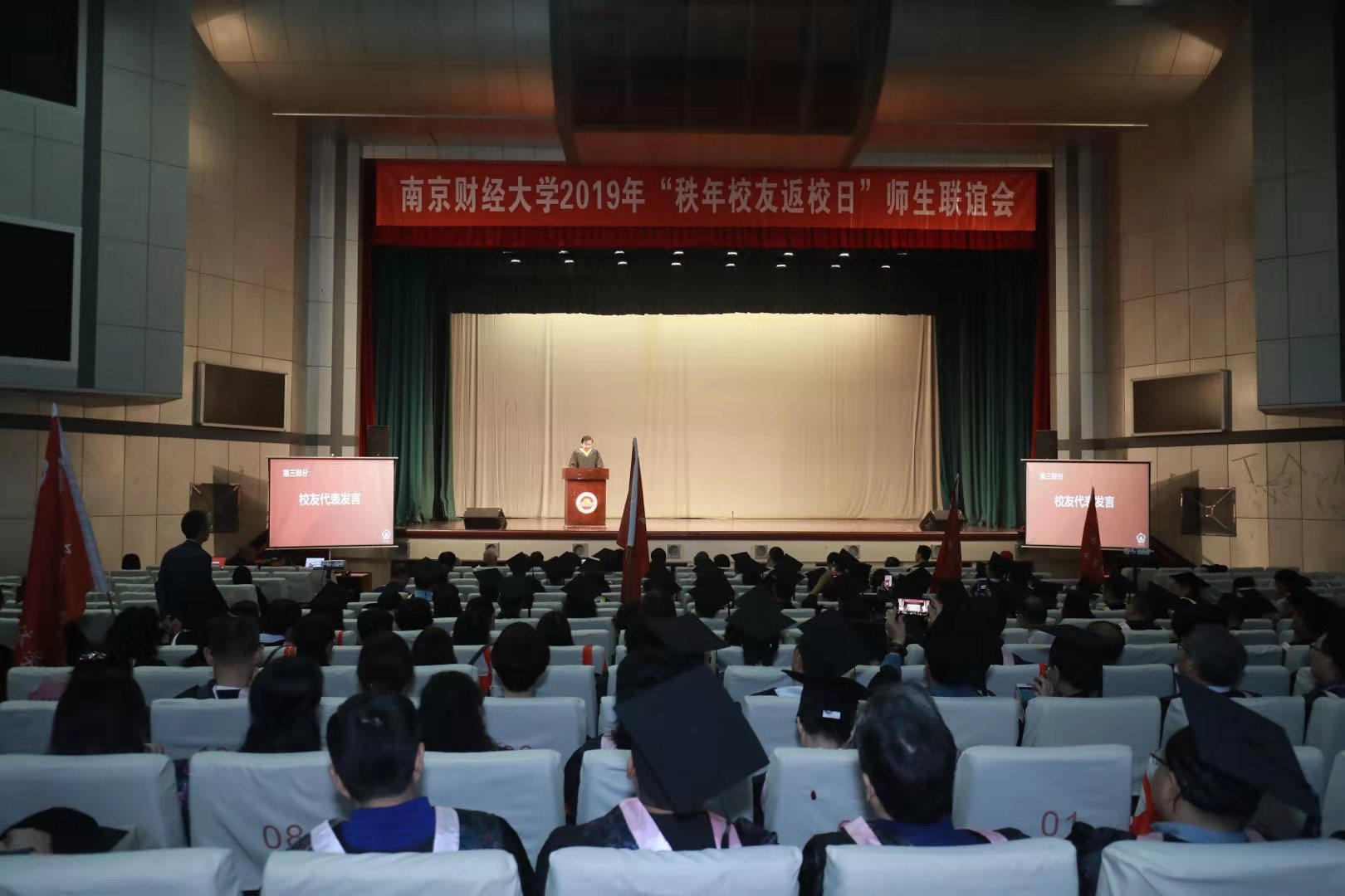 教师代表宋伟发言。他希望校友们秉承“自谦 自信 务实 超越”的校训精神,找寻人生的价值。85级校友代表与89级校友代表先后发言,诉说母校情怀,感谢母校栽培,感怀多彩的大学时光,分享独到的人生感悟。他们认为自身的成就离不开母校的栽培,也十分感谢母校为他们提供了回首再聚的机会。