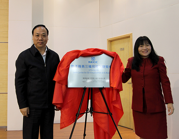 陈章龙书记与瑞典皇家理工学院班艺舫教授为“电子商务三维可视化研究中心”揭牌