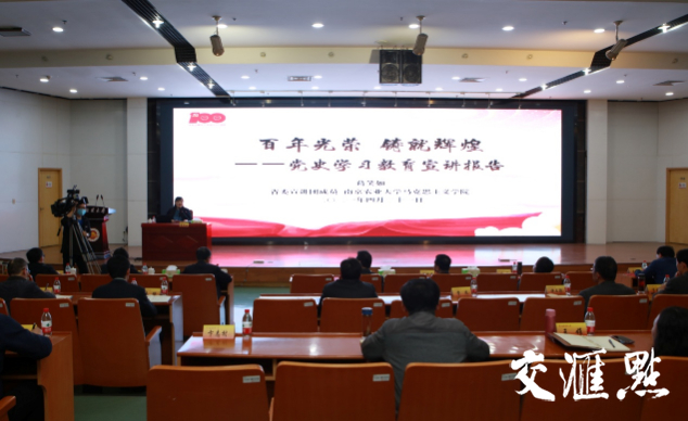 交汇点讯 4月21日,党史学习教育省委宣讲团成员、南京农业大学马克思主义学院教授葛笑如来到南京财经大学开展宣讲。宣讲报告会由南京财经大学党委书记张利民主持。