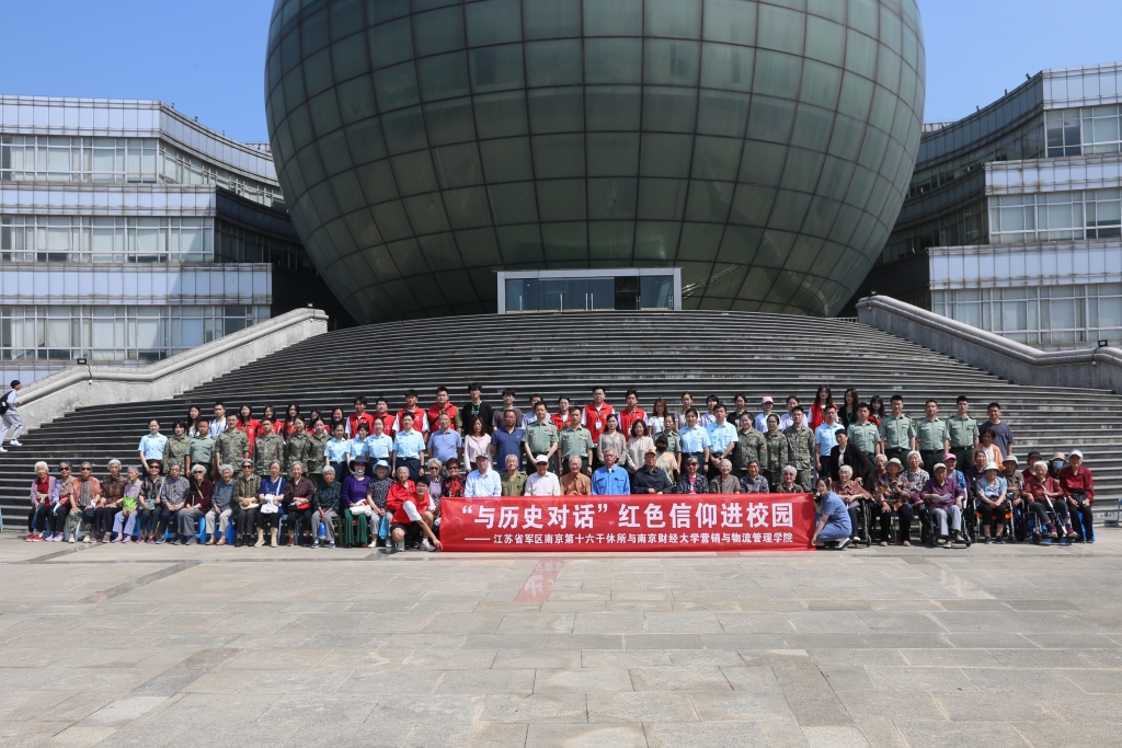 “爷爷好!欢迎您来我们学校参观。”大学生志愿者们在大巴车前“争先恐后”地搀扶着老干部,笑容满面。5月24日上午,江苏省军区南京第十六离职干部休养所组织老干部、老阿姨到共建单位南京财经大学营销与物流管理学院开展“与历史对话”——红色信仰进校园活动。
