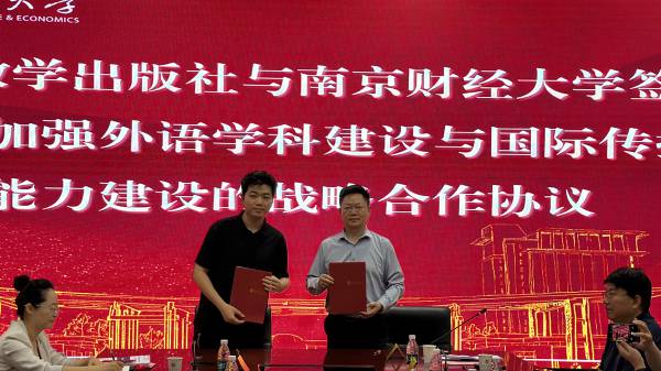 会上,华语教学出版社与南京财经大学签署关于加强外语学科建设与国际能力传播能力建设的战略合作协议,全国翻译专业学位研究生教育实习基地授牌。双方将加强外语学科建设与国际传播能力建设,共同培养具有全球视野和跨文化沟通能力的高素质人才,以基地建设增强学生的专业技能与实战经验,助力我国外语教育及国际传播事业发展。
