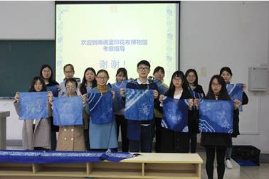 蓝印花布体验活动中,江苏省传统技艺技能大师倪沈键为同学们演示了刮浆和扎染两种形成花纹的方法,并邀请同学们尝试制作工艺手帕。一时间,同学们的创作欲被激发出来,通过两三人的合作,一方蓝印花布手帕很快完成。参与活动的法学1802班的周凌莉说,“老师温润如玉,讲话时给人感觉如沐春风。课程内容深入浅出,让我体验到了蓝印花布的美。体验过程中老师手把手教授经验,生动有趣,让我体验到了非遗文化的魅力。”