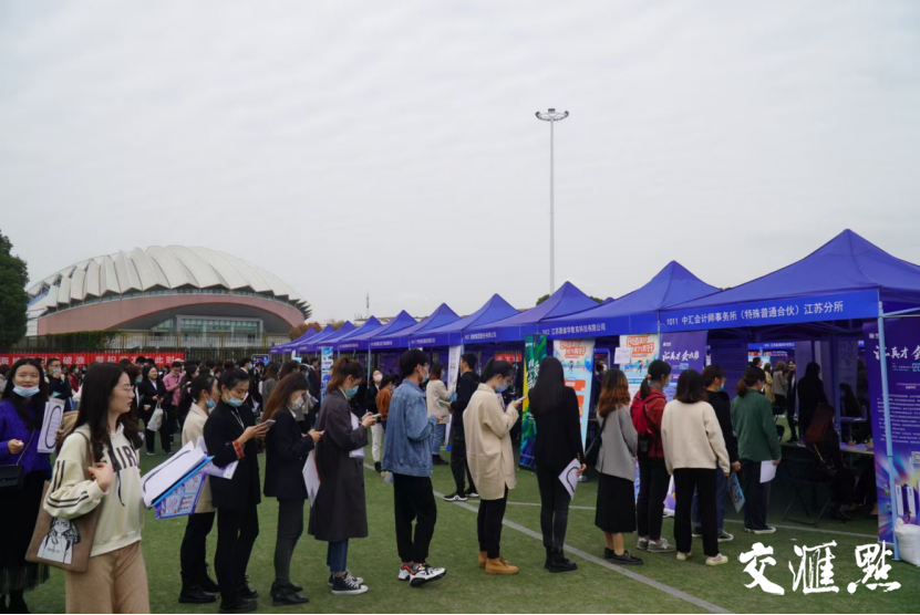 10月29日,江苏省“服务发展促就业”经济管理类暨南京财经大学 2021届毕业生招聘会在学校仙林校区西苑田径场举行。400余家企业携近56986个工作岗位进场招才纳贤,岗位涉及金融类、工商管理类、经济与贸易类、食品科学与工程类、计算机类等,4700余名2021届毕业生现场寻觅心仪的工作。