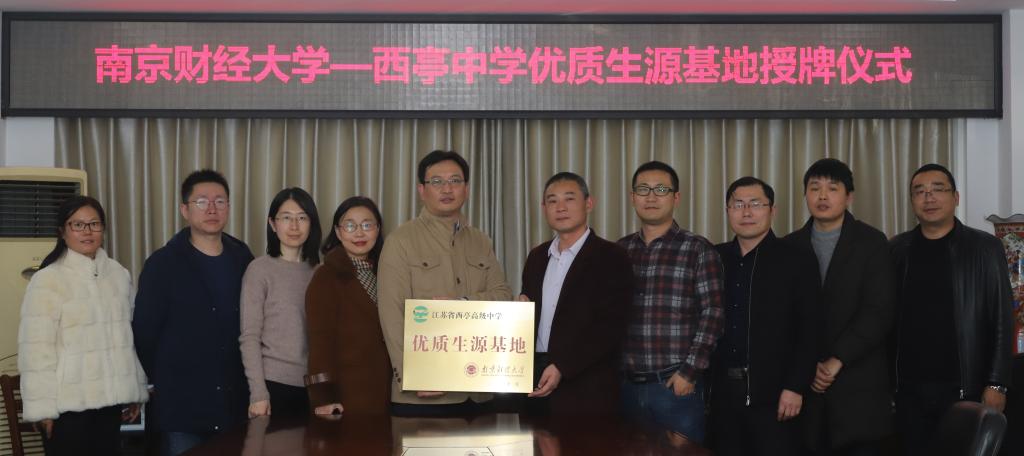 随后,孙菲副处长与季志峰副校长代表两校签订了《南京财经大学优质生源基地合作协议书》。殷建新书记代表学校授予江苏省西亭高级中学“南京财经大学优质生源基地”铜牌。