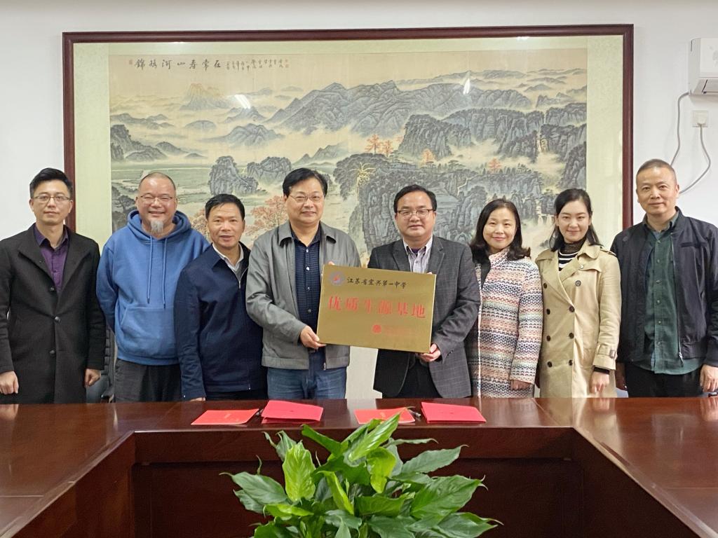 11月20日,艺术设计学院党委书记刘浩、党委副书记吴丹、副院长许蚌,学生处副处长孙菲一行来到有“陶都”之称的宜兴,与江苏省宜兴一中签署生源基地合作协议并举行授牌仪式。
