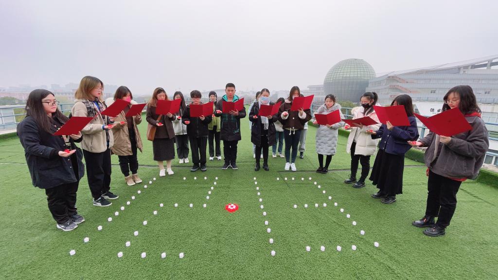 外国语学院开展了“烛光祭”默哀、公祭日知识竞赛、集体朗诵《和平宣言》等一系列主题教育活动,向遇难同胞致哀,让师生牢记历史、不忘屈辱,表达珍爱和平、圆梦中华的美好愿望。在场的2020级学生为南京大屠杀中逝去的同胞默哀三分钟,他们手捧蜡烛,脸贴上国旗贴,一起用烛光追思南京大屠杀死难者,祈愿世界和平。“巍巍金陵,滔滔大江,钟山花雨,千秋芬芳。一九三七,祸从天降,一二一三,古城沦丧……”学生们齐声诵读《和平宣言》,在这个特殊的日子里,发出青年学子对世界和平、构建人类命运共同体的呼吁。此外,学院还通过开展公祭日知识竞赛,带领学生回顾南京大屠杀的历史,了解抗战英雄萧山令的事迹,熟悉华裔女作家张纯如《南京大屠杀》的著作,让学生们真正了解南京大屠杀背后的故事,深刻理解设立“国家公祭日”的意义。