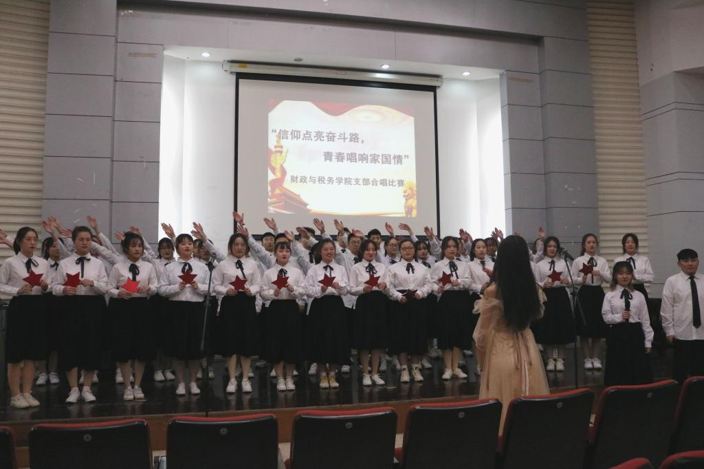 各团支部利用课余时间精心准备,积极排练,展现了财税学院青年学子爱国爱校、朝气蓬勃、昂扬向上的精神面貌。参赛曲目包括《我们都是追梦人》《夜空中最亮的星》《我和我的中国心》《我的祖国》《天耀中华》《我的中国心》《仰望星空》《星辰大海》等耳熟能详的歌曲。比赛期间,台上的同学们热情洋溢,声音洪亮,气势振奋人心;负责指挥的同学手势准确,富有激情;台下观众掌声不断,将比赛的气氛一次次推向高潮。