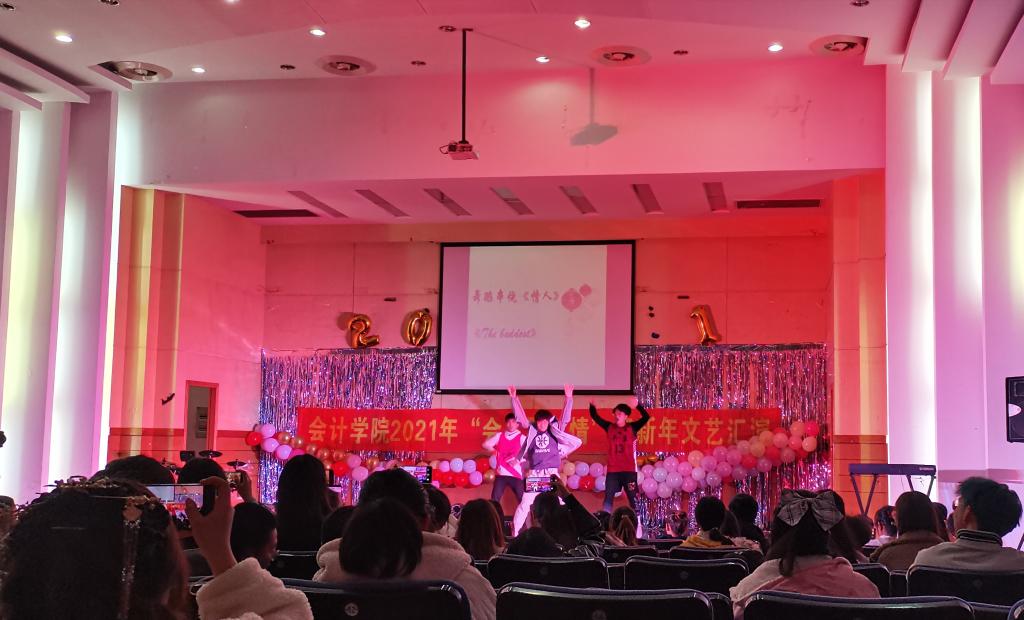 会计学院在仙林校区德济楼报告厅开展了2021年“会艺聚财情”文艺汇演活动,现场笙歌鼎沸,热闹非凡。热辣动感的女团舞《Rumber》、歌声轻灵的吉他弹唱《我爱你》、幽默有趣的音乐剧《达拉崩吧》、情感充沛的朗诵《2020你们过得好吗》、温柔缱绻的古风舞《雪落下的声音》、颇具感染力的歌曲演唱《用尽我的一切奔向你》……丰富多彩的节目将现场气氛逐渐推向高潮,观众们高举荧光棒,挥动手中的拍手器为台上的演员们欢呼喝彩,在一片欢乐祥和中共同期盼新年的到来。