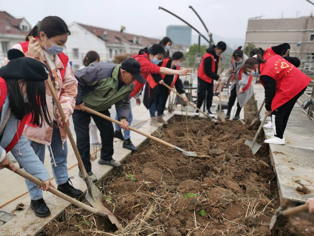 党委统战部、外国语学院、艺术设计学院组织30多名认捐树苗的师生党员、志愿者在镇江丹徒宝堰镇开展“不负春光添新绿、走进古镇学党史”主题党日活动。活动中,教师志愿者们种下了一棵棵充满生机和希望的树苗,并将刻有小树认捐者姓名的树牌挂在了树上。植树过程中,党委统战部副部长陈洁勉励参加活动的青年教师,十年树木百年树人,要像种植和浇灌花草树木一样浇灌学生、培育学生。既要教好课本中的知识,又要带领学生把日常所积累的知识养分融入并奉献到社会实践当中,日积月累,久久为功。