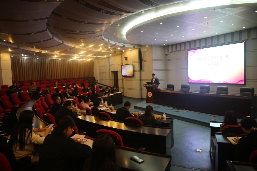 为集中展示党支部建设“提质增效”三年行动计划实施成果,推动基层党支部建设全面进步、全面过硬,4月27日,我校在仙林校区行政楼二楼会议室组织开展特色党支部评选答辩。南京师范大学外国语学院党委副书记、教育部高校思政工作队伍培训研修中心(南师大)办公室副主任田军,南京邮电大学党委组织部副部长、党校副校长刘挺,南京林业大学党委组织部副部长彭斌,我校党委办公室、校长办公室主任孙彬,机关党委书记兼党校办副主任郝园园,校团委书记徐刚,党委学生工作部副部长、学生处副处长赵亮,党委研究生工作部、研究生院副院长华凌志担任评委。14个党支部参加答辩,各基层党支部书记代表现场观摩学习。答辩会由党委组织部副部长王鑫主持。