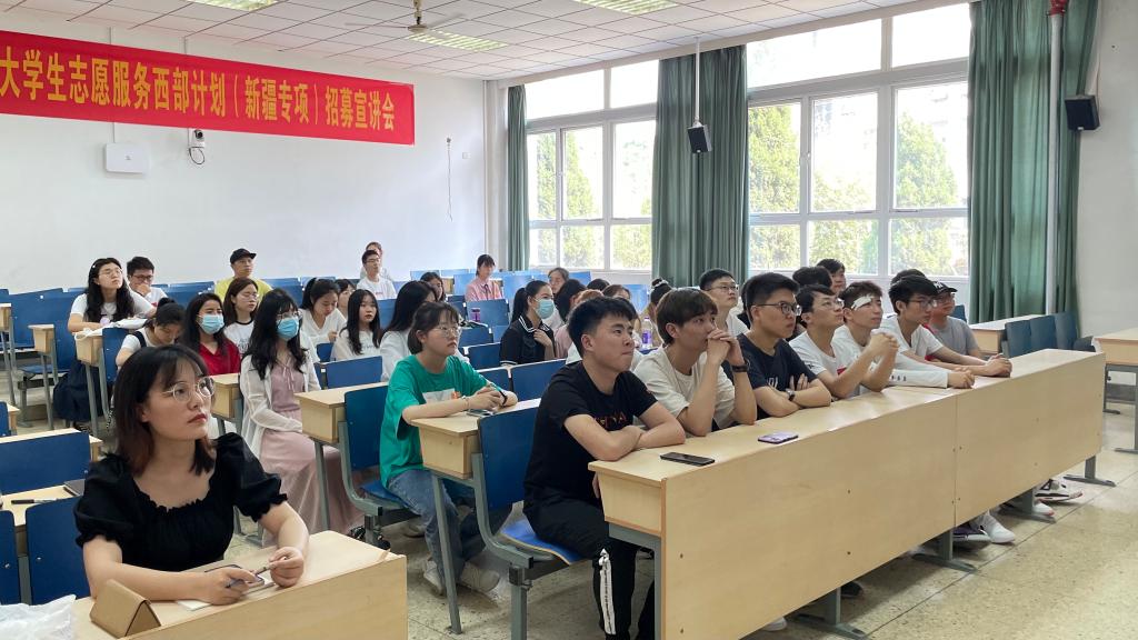 5月11日下午,我校2021年大学生志愿服务西部计划(新疆专项)招募宣讲会在仙林校区德正楼113室举行。西部计划新疆专项项目办领导、共青团江苏省委社会联络部成员、校团委负责人、校青年志愿者协会成员与各学院应届毕业生代表参加宣讲会。