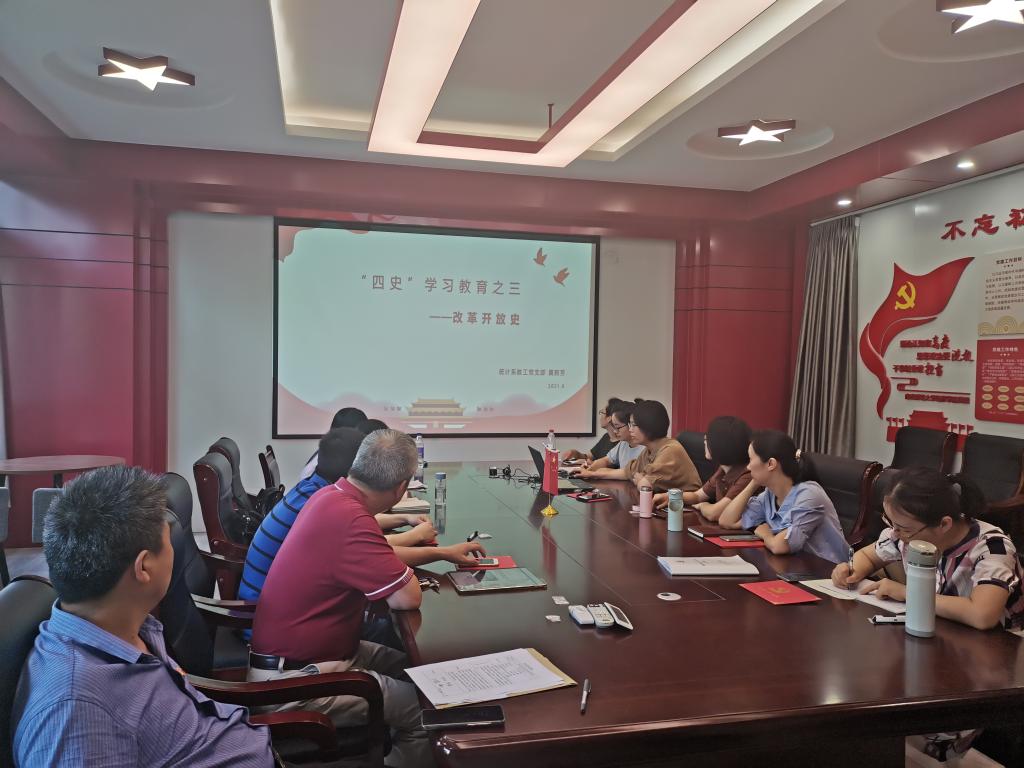 统计系教工党支部书记黄莉芳以“四史学习教育之三——改革开放史”为主题讲授专题党课。她从内容、时间和整体等角度对四史之间的关系进行了解读,从改革开放的历史回顾、成就展示、成功原因、问题聚焦和未来思考五个方面讲述了改革开放的历史。她以四十多年前的小岗村的民生变迁为例回顾了改革开放以来的大事,从社会生产力高速发展、经济质量显著提升、科学技术日新月异、文化事业繁荣发展、人民生活水平极大提高、民生改革阔步前进等方面展示了改革开放的成就,并具体分析了改革开放成功的原因和目前面临的问题,提出了未来的思考与发展方向。