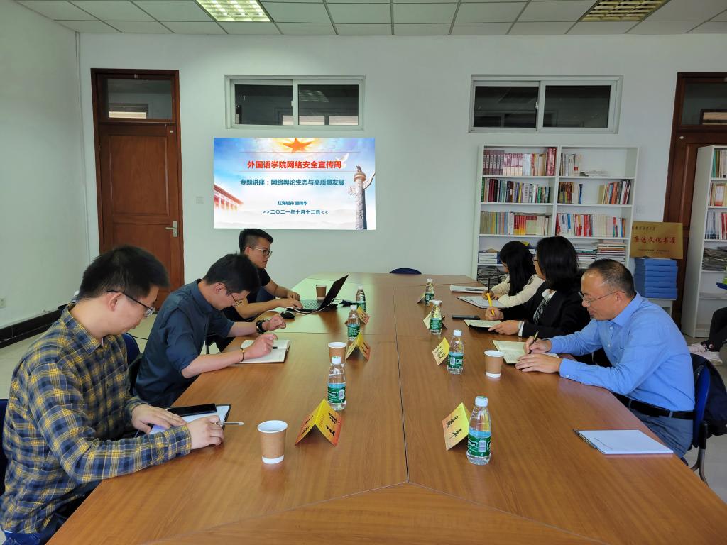 外国语学院开展了题为“网络舆论生态与高质量发展”的讲座,邀请红舟智网首席产品官(CPO)顾伟华为主讲嘉宾,党委宣传部副部长秦韶华担任点评人。讲座由外国语学院党委书记李骏主持。校报记者团、校新媒体中心、外国语学院学生宣传队伍聆听了此次讲座。顾伟华就高校网络舆论的现实新动向、深层次原因以及如何应对三个方面展开了详细讲解。结合工作中的相关经验与体会,顾伟华先生提出了应对与处置热点事件的建议:以内容为核心,以事实为依据进行正确表述;说话要有技术,要认真说、好好说;渠道要丰富,充分了解受众需求;处置有程序,要进行主动引导、快简回应与全媒展现,努力使知识变成常识,事实变成共识。秦韶华副部长对讲座作了精彩点评。他认为,通过此次讲座,广大师生对网络安全特别是网络舆论有了更为深入全面的认识。