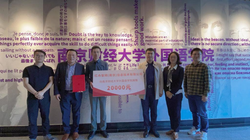 10月13日,外国语学院与红舟智网(南京)信息技术有限公司校企合作暨捐赠仪式在仙林校区德正楼325会议室举行。红舟智网创始人兼总经理章崴,我校对外联络处处长王立峰,外国语学院党委书记李骏、院长孙勇彬一行出席本次捐赠仪式。仪式由李骏书记主持。