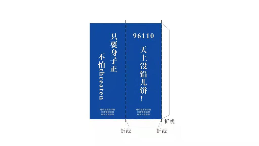 为加大防范电信网络诈骗宣传力度,预防和减少诈骗案件的发生,11月3日,财政与税务学院、工商管理学院与信息工程学院联合设计了一款反诈创意书签。