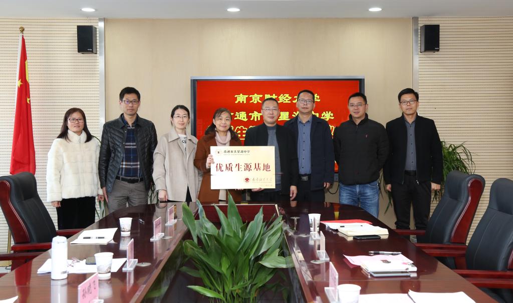 11月22日,我校在南通市天星湖中学建立优质生源基地,并举行签约授牌仪式。南通市天星湖中学党委书记、校长戴继华,党委委员、副校长单冬旺、张建锋、吴冬杰,我校学生处副处长、招生办公室主任孙菲,应用数学学院党总支副书记布丹丹、学工办主任孙晓飞、金融数学系主任黄顺林参加仪式。