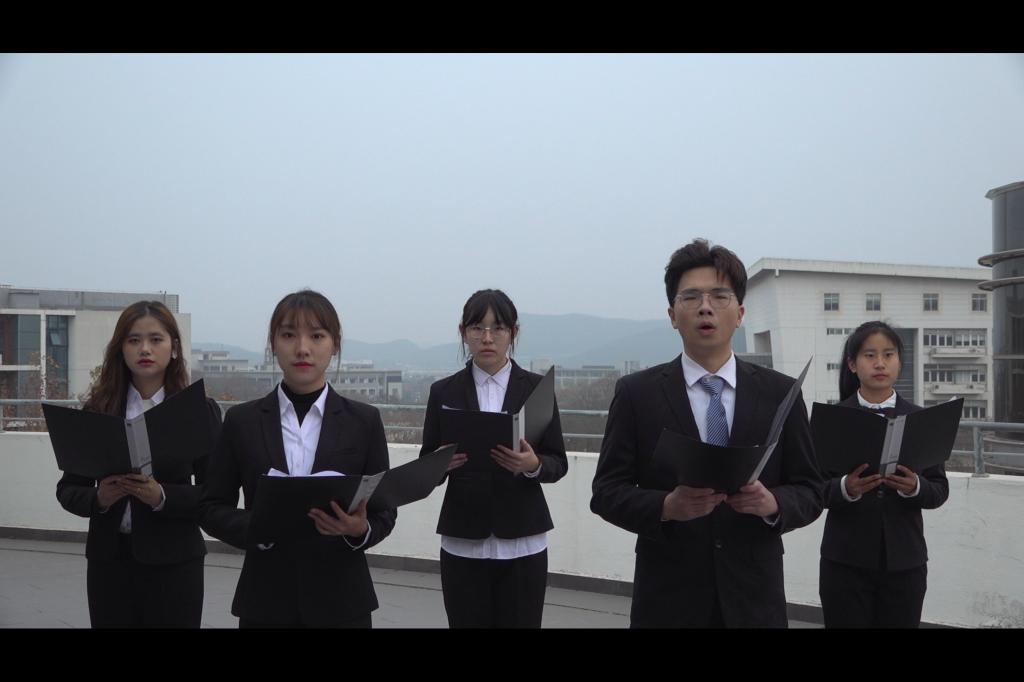 诗文朗诵诉真情。食品科学与工程学院的同学声情并茂地朗诵了《南京大屠杀偶书》,将哀思寄于诗文。艺术设计学院的朗诵《红色信仰》回望新中国发展之路,热情赞美了中国共产党,红色精神在继承中发扬,在盛世中绽放。新闻学院学子带来一首荡气回肠的《泱泱华夏》,携着历史的风霜,传递生生不息的希望,祈愿和平永驻,携手圆梦中华。《南京大屠杀公祭》翻开历史中黑色的一页,辉煌的六朝古都一夜暗淡,今昔对比间,更让大家懂得和平来之不易。最后,一首娓娓道来的《和平的赞歌》澄明而又温暖,引领同学们循着白鸽翱翔的轨迹,守护自由与和平。财政与税务学院学子错落站于德经楼草坪,目光沉重而又坚定,神情凝重而又肃然,音乐响起,朗诵之音也随之而生。朗诵完毕,同学们集体默哀,以沉重的心情缅怀逝者。