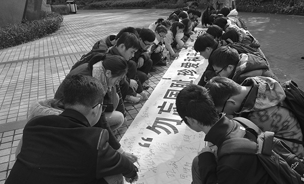 信息工程学院学子集体横幅签名 信息工程学院供图
