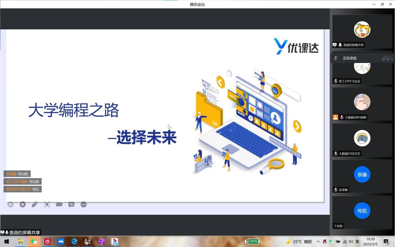 在5月5日的开营仪式上,来自菜鸟网络科技有限公司的高级技术工程师为打卡营的同学们带来了“大学编程之路——选择未来”主题讲座,从信息技术行业现状、发展趋势和大厂校招相关要求等方面切入,介绍了相关专业学生在大学阶段该如何做好就业准备。