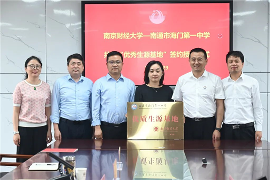 随后,茅炜处长与朱振华校长代表两校签订了《南京财经大学优质生源基地合作协议书》,并代表学校授予南通市海门第一中学“南京财经大学优质生源基地”铜牌。