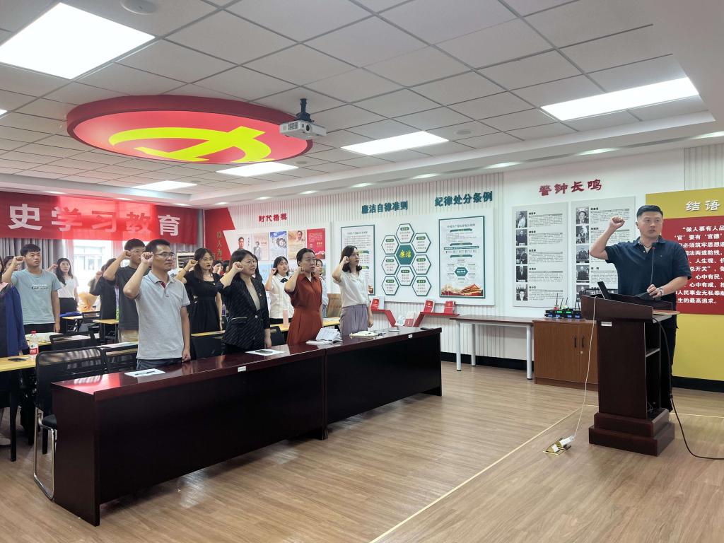 为激发毕业生党员的使命担当意识,金融学院在毕业生党员即将离校之际,为他们上好“最后一课”。开展一次“实践课”,志愿服务显担当。6月16日,金融学院学生党员把惜别之情转化为感恩行动,开展了党员志愿服务活动,进行义务保洁和学业帮扶,用暖心服务践行初心使命。上好一堂“思政课”,坚定信念勇向前。6月22日上午,金融学院党委书记李玉琴、副书记张士青和各年级辅导员与毕业生党员相聚学院清廉金融教育基地,一起回忆遇见南财和金融学院的奇妙缘分和美好时光。考取中国农业大学博士的郭铖宋、参加西部计划的孙千惠以及就职江苏银行的王婷婷,回顾了四年大学生活,号召广大毕业生党员坚定服务人民、奉献社会的信念,勤于实践、踏实做事,用努力和成功来回报母校、回报社会。张士青副书记带领毕业生党员重温入党誓词。