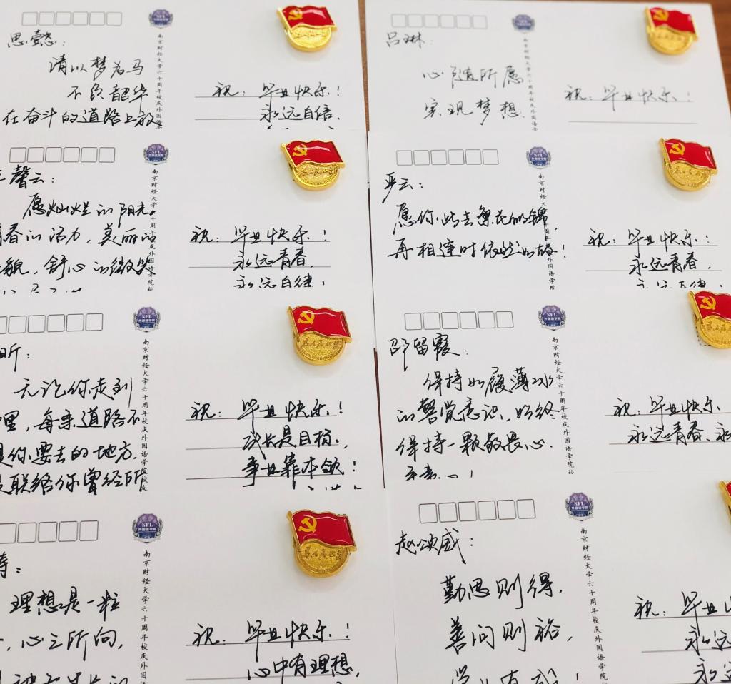 外国语学院送给毕业生党员写满温馨祝福的卡片