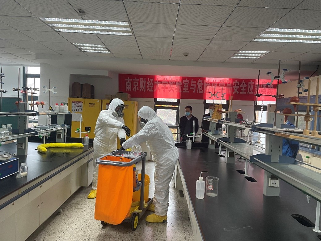 为进一步加强实验室安全管理,提升师生应对突发性实验室与危化品安全事故的应急处置能力,11月18日,我校在仙林校区工科楼开展了实验室与危化品安全应急演练活动。此次演练由科研处主办,食品科学与工程学院承办,保卫处、教务处、营销与物流管理学院、信息工程学院等单位相关负责人、实验室安全管理人员、研究生导师及学生代表等80余人参加演练。