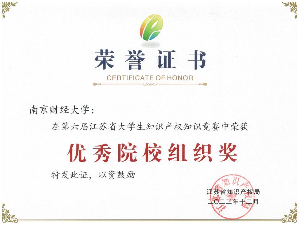 我校获第六届江苏省大学生知识产权知识竞赛优秀院校组织奖