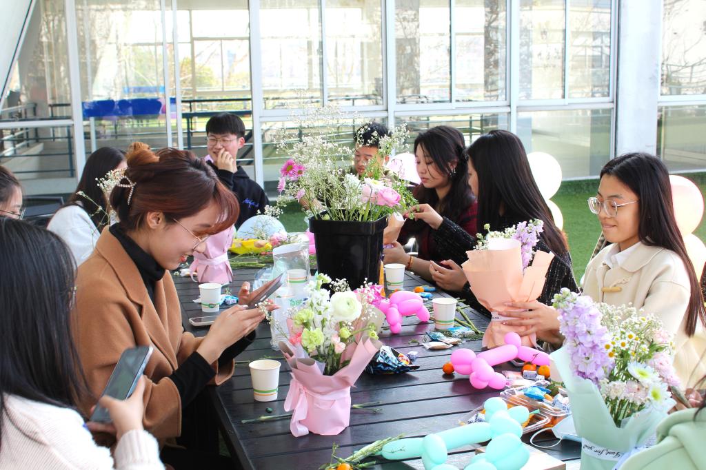 美甲花束温暖“手”护。艺术设计学院开展“‘艺’心‘手’护,指上添花”致敬校园守护者活动、8位女同学组成了美甲小分队,凭借扎实的手绘功底,在万物复苏这个特殊节点通过“娟妈妈”辅导员工作室为学校奋战在一线的女教职工提供温暖的“手”护,感恩校园守护者们的细心、热心、关心、爱心。新闻学院开展“巾帼心向党,奋进新征程”活动。活动邀请研究生吴超同学指导学院“女神”们制作气球花束。吴超学习气球造型已有八年,能够制作数百种气球造型。经过巧手编织,一朵朵色彩斑斓、造型各异的气球鲜花栩栩如生地呈现。