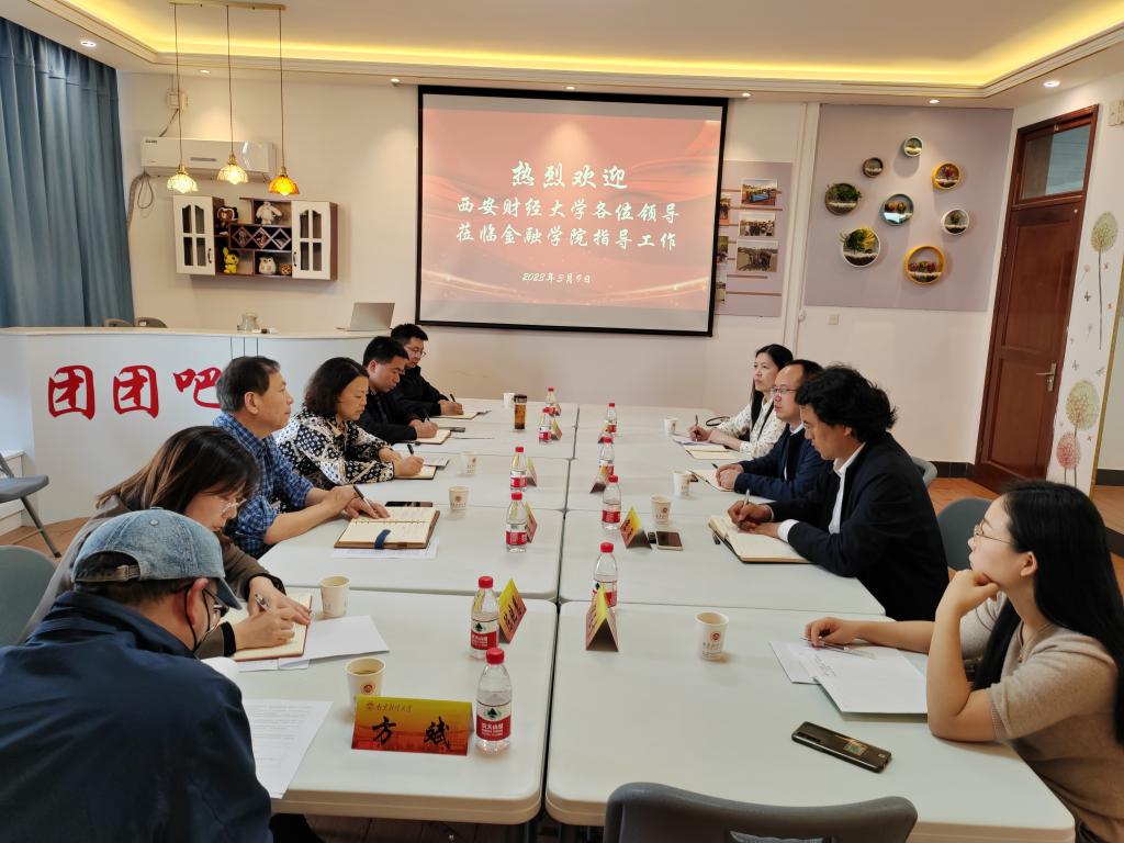 3月9日下午,西安财经大学经济学院院长宋敏,副院长周宇、宋长青和公共管理学院院长宁泽逵一行4人来我校金融学院调研交流,座谈会在仙林校区德经楼527会议室举行。我校金融学院党委书记李玉琴,院长宣烨,副院长姚定俊、陈晓慧、尹雷以及相关工作人员参加会议。会议由宣烨院长主持。