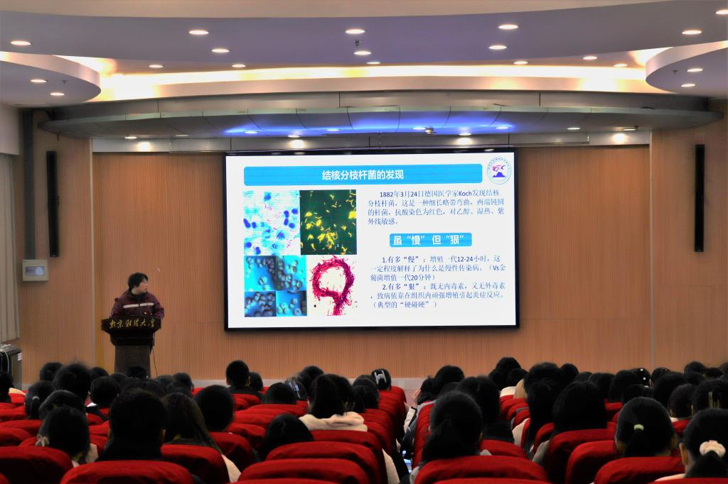 3月25下午,校医院邀请了栖霞区疾病预防控制中心周芳芳医生、唐蓉医生和江苏省红十字救援队敬皓然队长为同学们进行科普宣讲。周芳芳医师结合经典案例,从预防治疗方法与病情处置两个方面对结核病进行讲解。她强调,在校生作为结核病感染的高发人群,更应了解相关知识,提高结核病预防意识。唐蓉医生从传染源、传播途径、病症危害等多个方面为大家普及艾滋病与丙肝防治知识。敬皓然队长为同学们认真讲解了院前救护急救知识,并演示了急救方法。