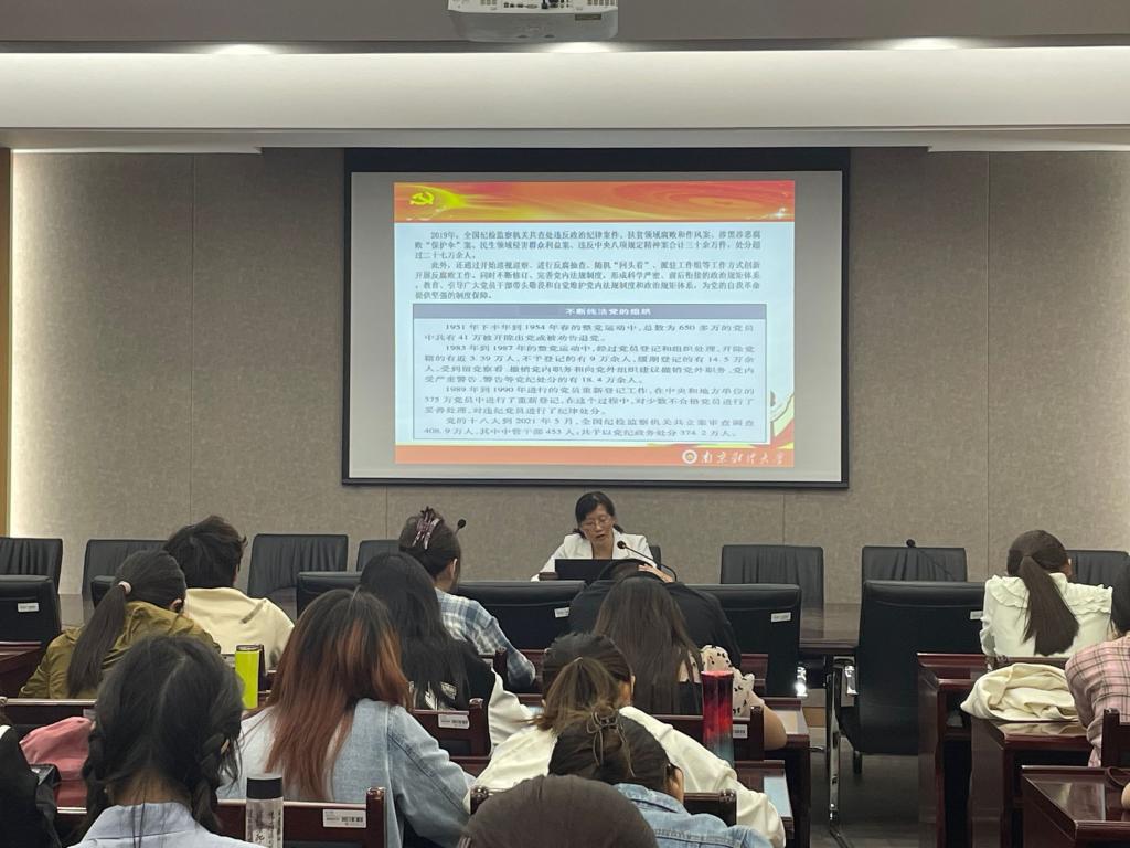 政治辅导员领航讲。4月20日晚,国际经贸学院政治辅导员周亚芳书记围绕“学思想明方向,重践行书华章”讲授专题党课。5月10日晚,政治辅导员余泳泽院长围绕“党建引领下的学术研究”作专题党课。他们强调所有同学要坚决维护国家和人民的利益,拥护党的领导,切忌好高骛远,从身边小事做起,以脚踏实地的奋斗之姿奋力书写无愧于时代的青春华章。