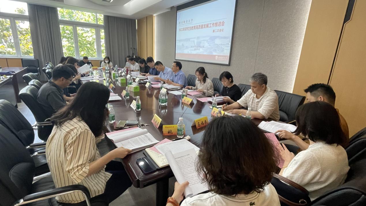 随后,杜修立副院长通报了《南京财经大学教育教学成果综合评价实施方案》中研究生教育部分的基本内容,重点解读了《南京财经大学研究生教育高质量成果建设联动工作实施方案》出台的背景。他表示,工作实施方案旨在强化校院两级管理联动,通过“学校统筹、学院实施”的工作模式,构建有效的校院两级成果建设工作联动反馈机制。各学院(中心)分管院长围绕2023年研究生教育高质量发展工作,汇报交流了各自的工作思路、特色举措以及发展成效等。